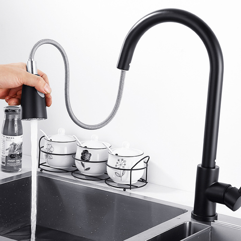 Fabriek Commerciële Matzwarte Dek Gemonteerde Gootsteen Kraan Pull-Down Kokende Kranen Met Enkel Handvat Pistool Metalen Stijl